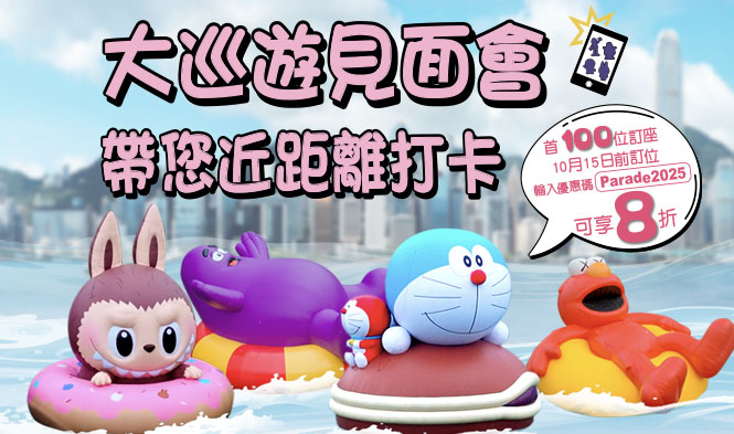 Includes: Snack buffet on cruise, sightseeing Victoria Harbour, and close-up photos of four international IPs