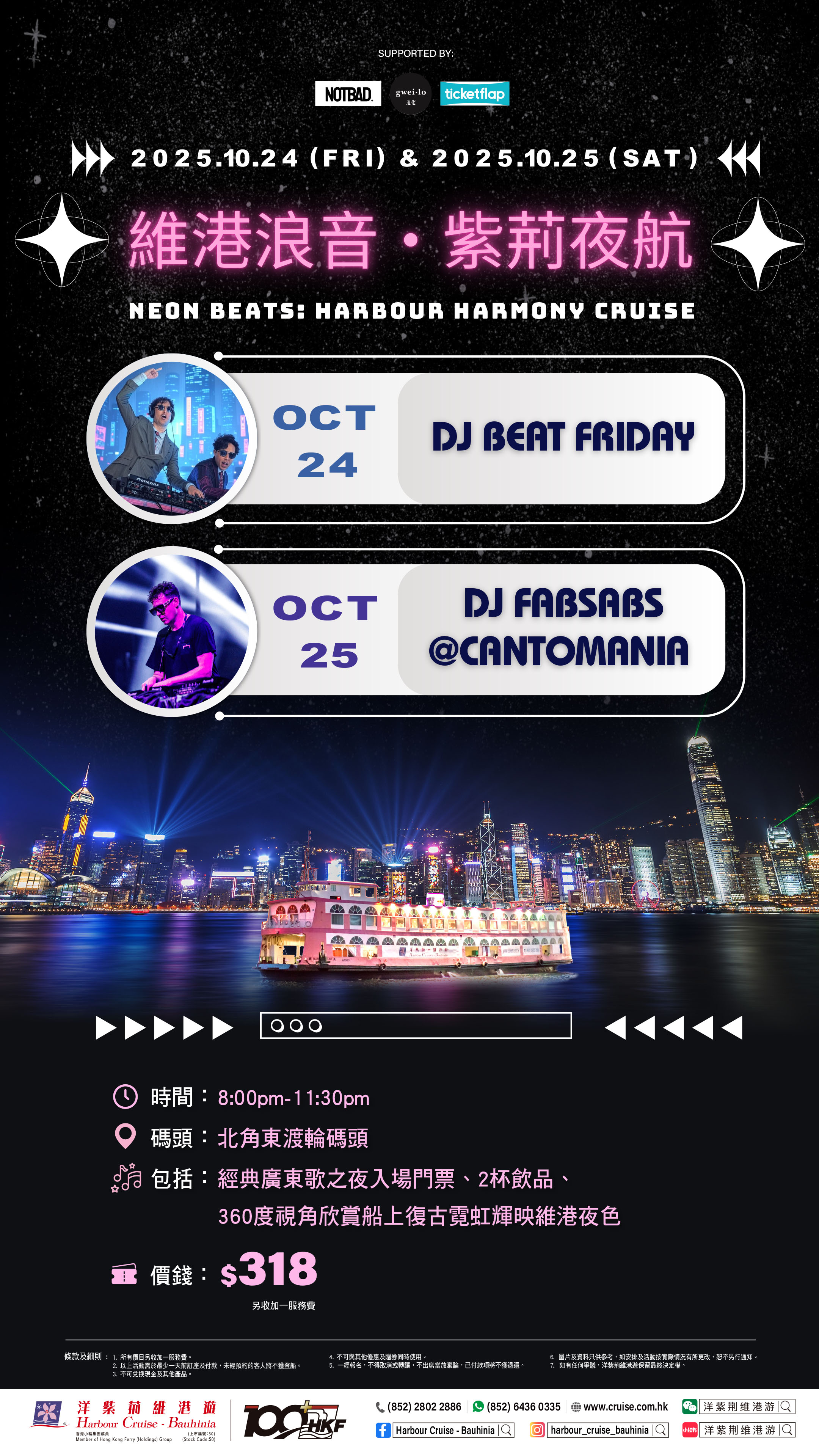 Harbour Cruise - Bauhinia is one of the official ticketing platforms for the "Neon Beats" For enquiries, please contact the organizer"Not Bad Events Limited" at 98191838