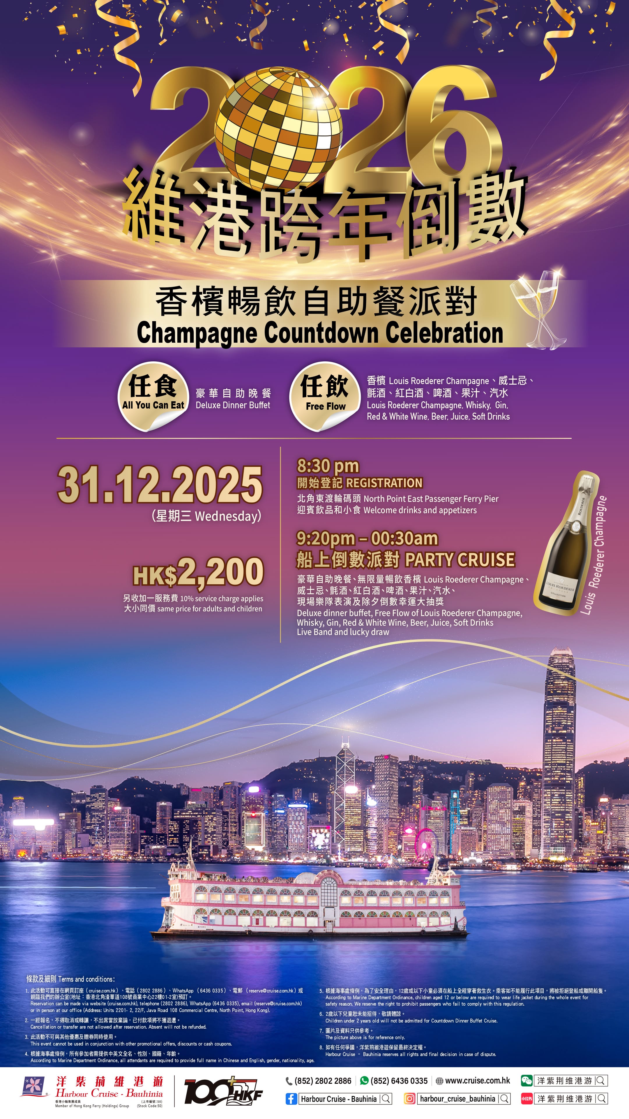 Reserve your seats: Click [BOOK NOW] in the upper right corner of the website. or via Hotline (2802 2886), WhatsApp (6436 0335), email (reserve@cruise.com.hk) or in person at office.