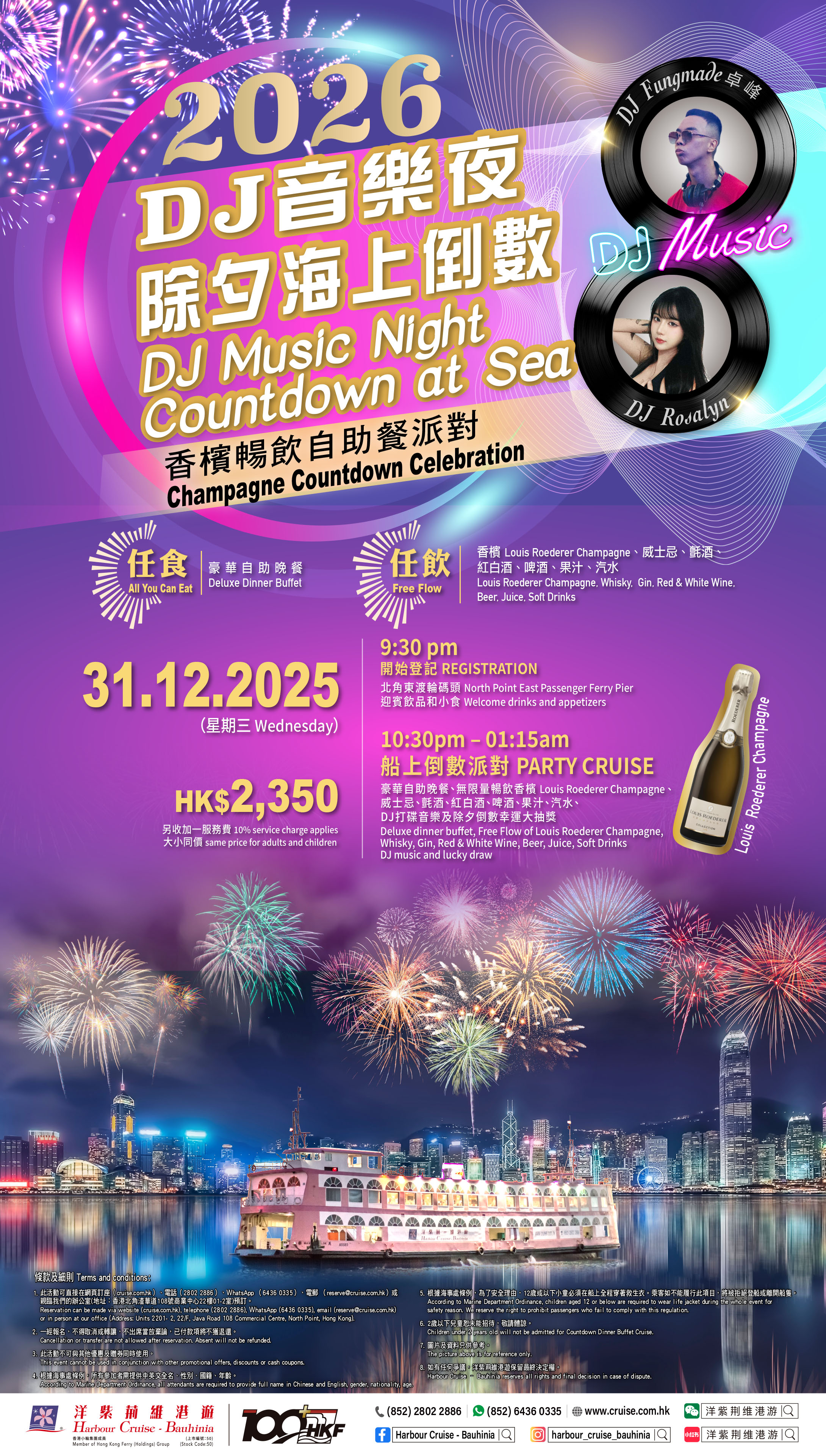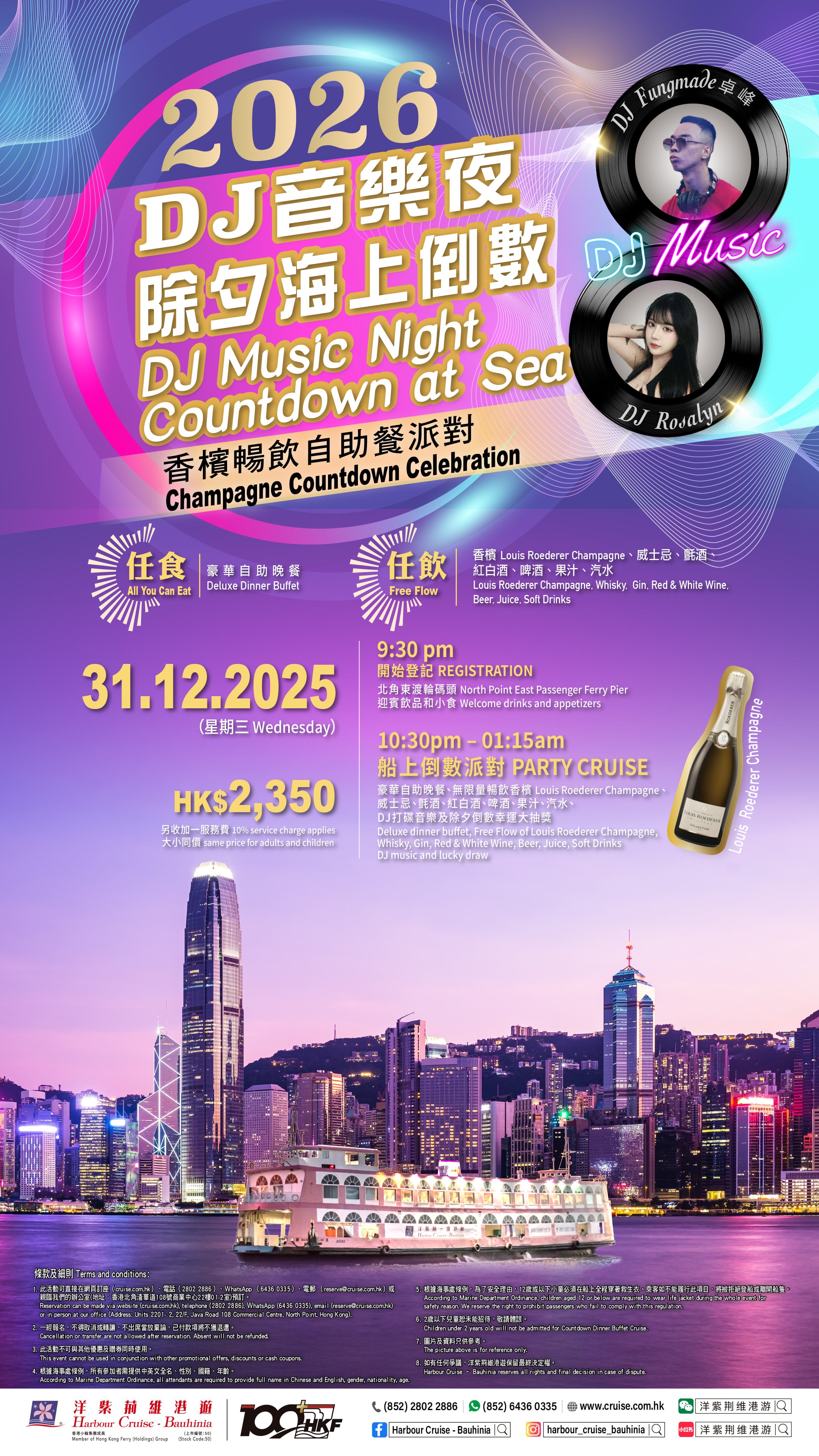 Reserve your seats: Click [BOOK NOW] in the upper right corner of the website. or via Hotline (2802 2886), WhatsApp (6436 0335), email (reserve@cruise.com.hk) or in person at office.